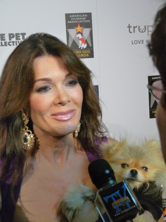 Lisa Vanderpump from the reality TV series “The Real Housewives of Beverly Hills” arrived at the event carrying her dog.